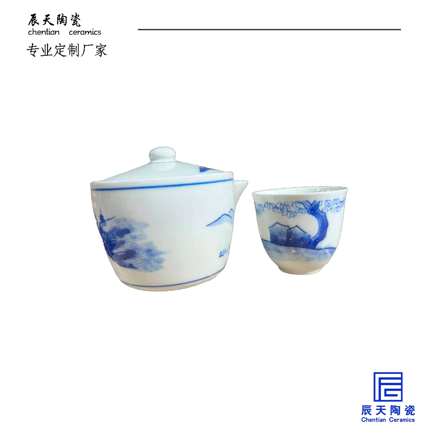 客户定制 一千套青花茶具套装