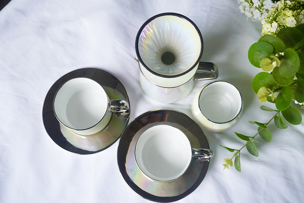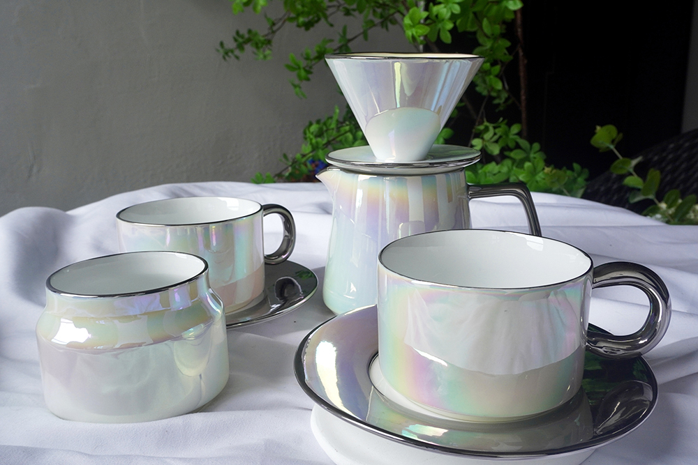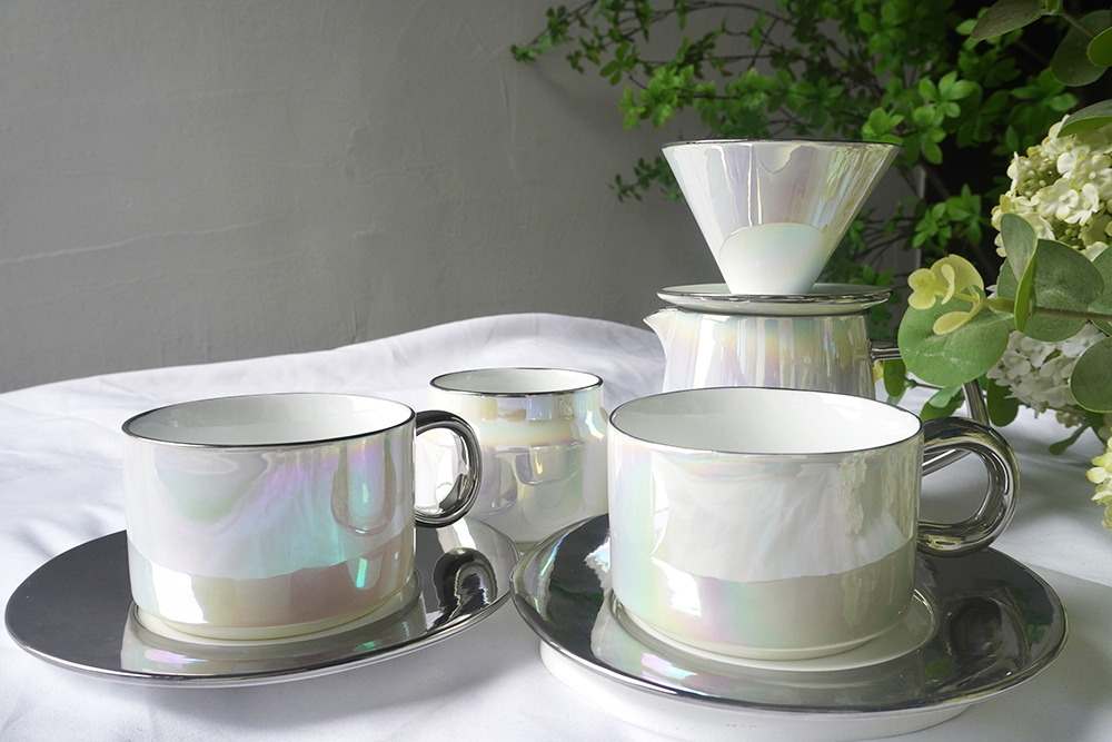 客户定制 镀银炫彩珍珠白陶瓷咖啡具