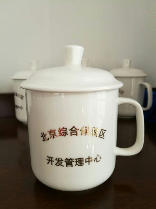 北京综合保税区定制 白色带盖大手柄陶瓷茶杯