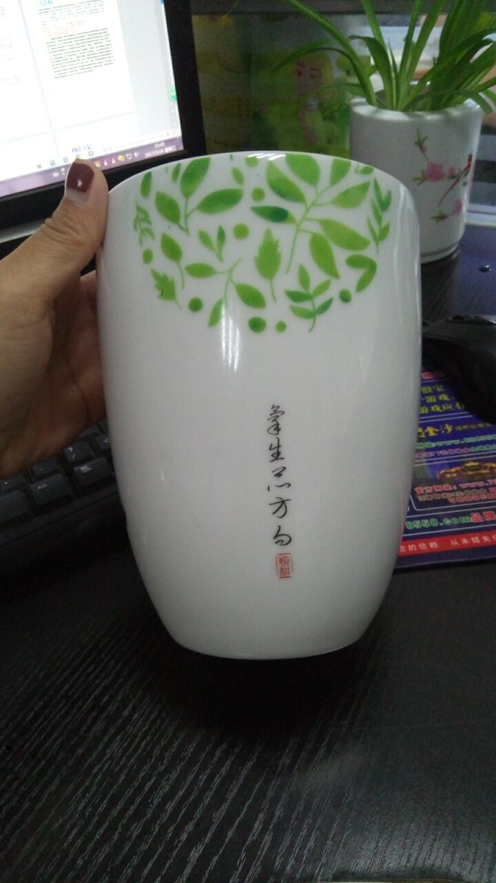 客户定制 景德镇手绘陶瓷绿叶文字加湿器