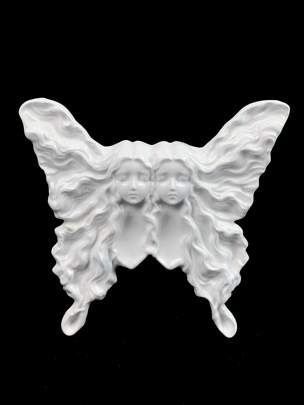 范思哲定制 创意蝴蝶双生陶瓷摆件