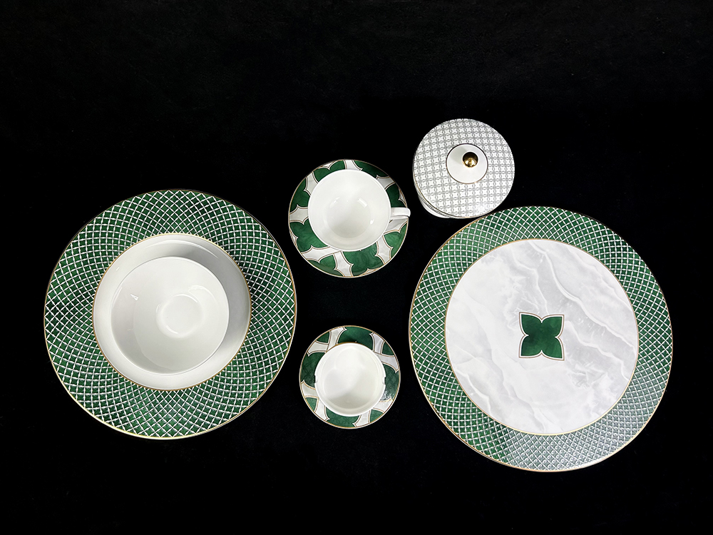 客户定制 经典网纹陶瓷描金四叶草餐具